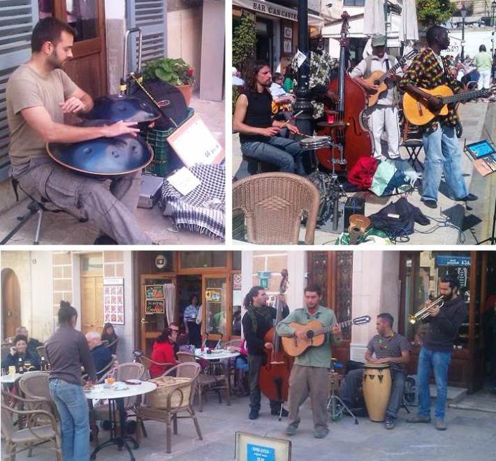Músics en cada plaça i als carrers principals.