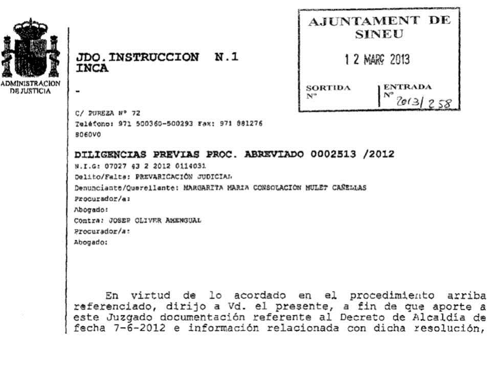 Document en que Mulet acusa Pavarotti de prevaricació.
