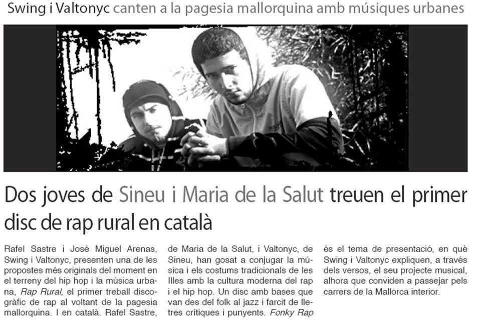El més popular dels sineuers a Youtube, com podeu imaginar, és Valtònyc (2250 entrades). José Manuel Arenas (aquest és el seu nom real) va llançar la seva primera maqueta el 2009 i en pocs dies va propiciar més de 8.000 visites al seu espai a la xarxa. Va treure el seu primer treball de rap rural fa aproximadament dos anys, amb Rafel Sastre, Swing, de Maria de la Salut. Tanmateix Valtònyc s’ha donat a conèixer especialment per les polèmiques que hi ha hagut entre ell, el Círculo Balear, les Noves Generacions de Sineu i el propi batlle de Sineu Pere Joan Jaume. Vos oferim un vídeo gravat fa dos mesos a Sineu, en pla amateur.