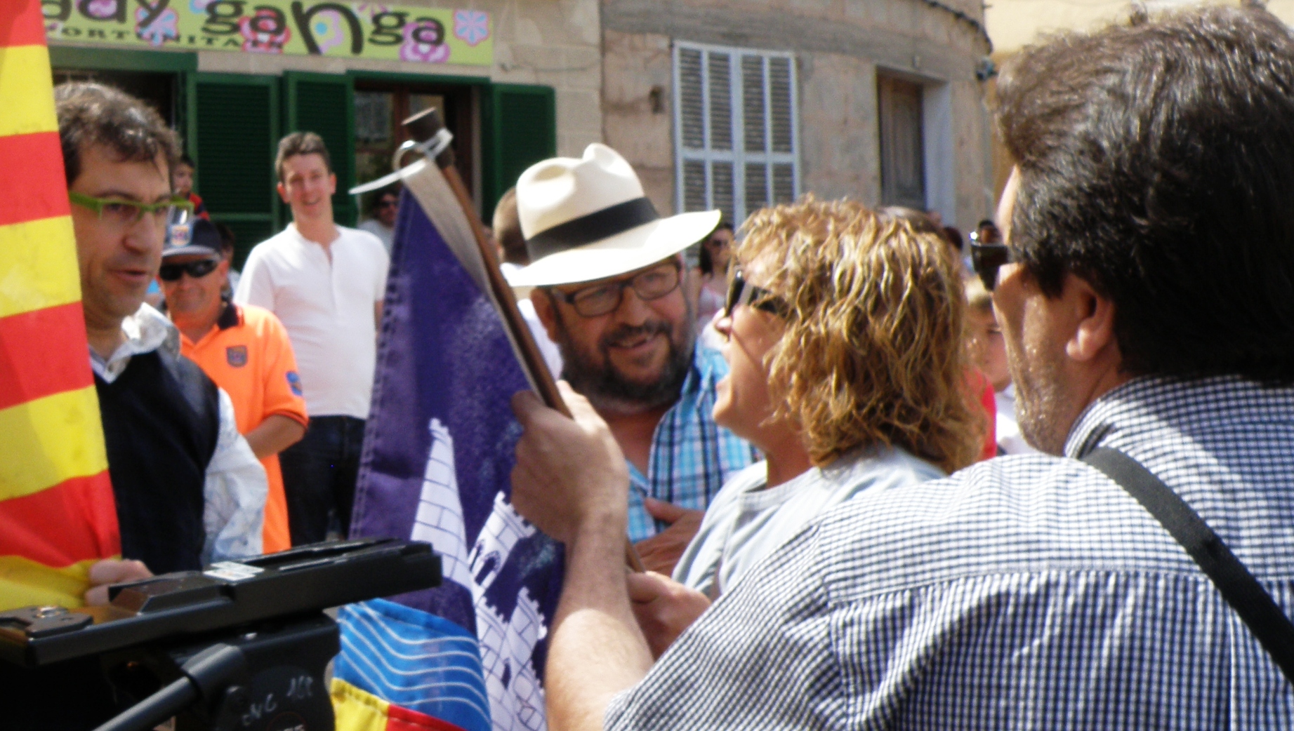 Davant aquests fets, un grup de sineuers desplegaren dues senyeres grosses, fet que derivà en un greu enfrontament verbal entre tots dos bàndols. Unes senyores externes (cap d’elles no era de Sineu) s’afuaren a les senyeres amb la intenció d’arrabassar-les. Es pegaren empentes i se sentiren crits de “catalanistas de mierda”. La Policia Local hagué d’intervenir.