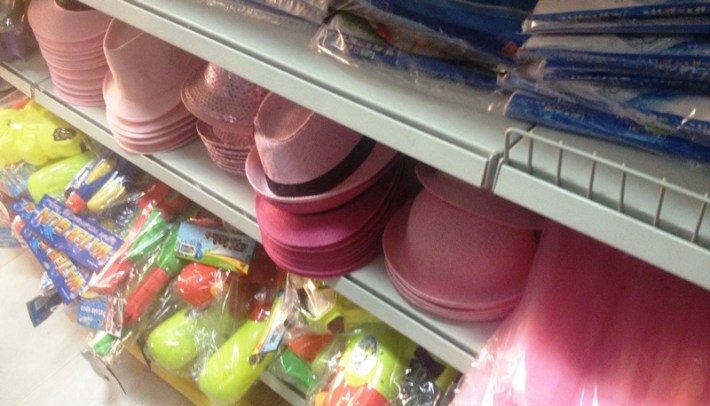 Productes de color rosa en el basar xinès del vial de circumval·lació.