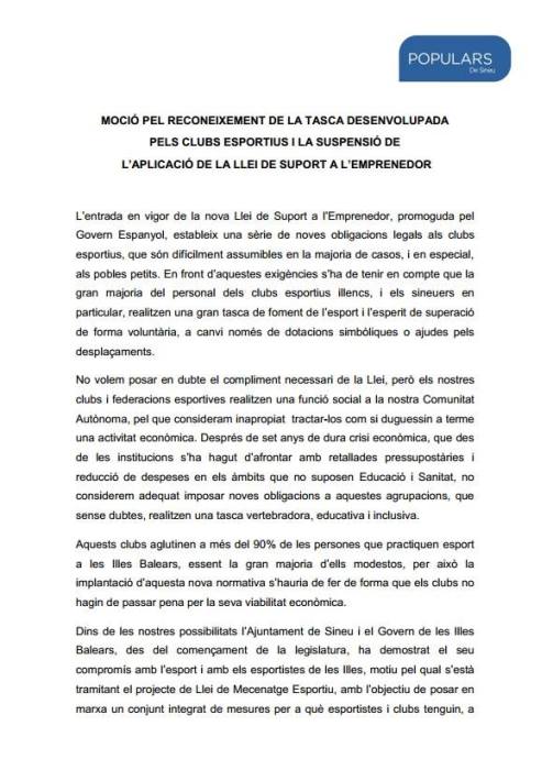 ← El PP local presenta una moció contra la llei del PP estatal que pot fer desaparèixer els clubs petits