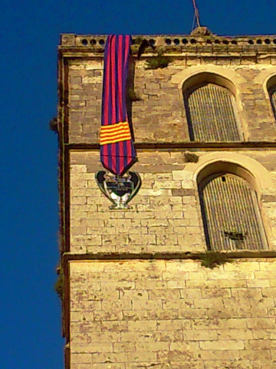[FOTONOTÍCIA] Pengen una enorme bandera blaugrana en el campanar