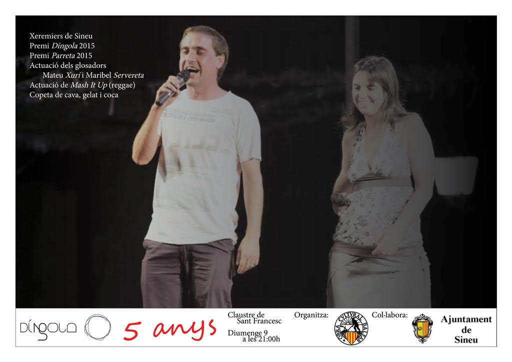 Per saber quina és la glosa guanyadora encara haureu d’esperar una mica . El lliurament dels premis es farà en el transcurs de la festa del cinquè aniversari de la revista Díngola, diumenge 9 d’agost a les 21,00h. La festa comptarà, també, amb l’actuació de tres glosadors de primera línia, Mateu Matas Xurí, Maribel Servera i Pau Riera, així com dels Xeremiers de Sineu i del grup de música Mash it up. També tendrà lloc el lliurament del premi Díngola 2015.
