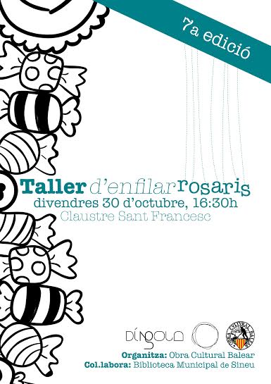 Per altra banda, la delegació de Sineu de l’Obra Cultural Balear torna a donar a conèixer, un any més, el costum tan arrelat de regalar, per la festa de Tots Sants, un rosari ensucrat. Un enfilall de panetons, bombons i altres peces de dolçaina, amb una rotllana de carabassat, anomenada patena, de dimensions més o menys grosses, que imita un rosari. Aquest divendres, a les 16:30h, al Claustre de l’Ajuntament, es durà a terme aquest taller per a tots aquells nins i nines que vulguin enfilaran el seu.