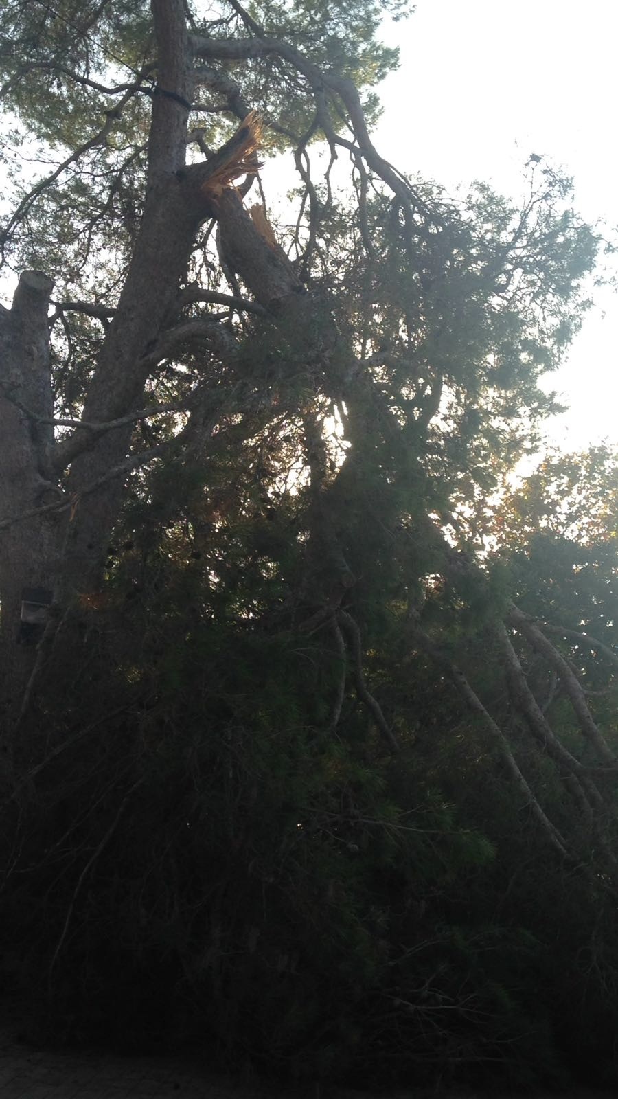 No ha produït cap dany personal, però si que ha danyat una farola. Una branca d’un gran arbre de la plaça des Fossar ha caigut avui vespre, com veieu a la foto.