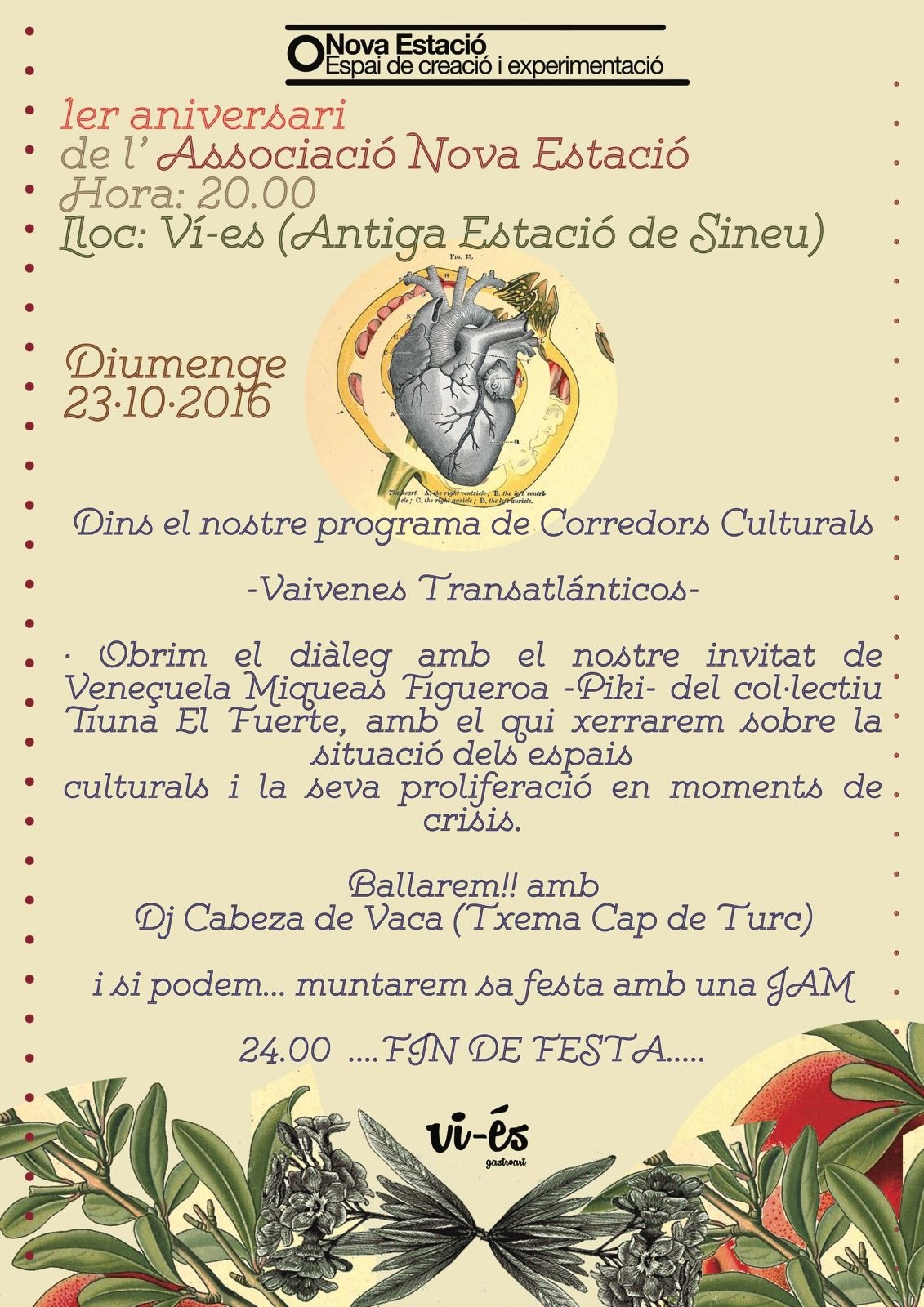 L’espai de creació Nova Estació, situat a l’edifici de l’estació de Sineu, damunt del local Vi-és, demà fa un any. L’espai és gestionat per la veneçolana i sineuera Tupa Rangel, una autèntica activista amb la que Díngola i OCB han col.laborat dins l’àmbit de la multiculturalitat. Demà una festa celebrarà aquest any de Nova Estació.