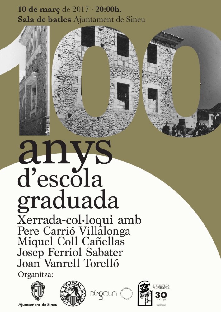 Demà, a les 20h a la sala de batles, hi haurà una xerrada-col·loqui sobre els cent anys d’Escola Graduada, entre Pere Carrió, Miquel Coll, Josep Ferriol i Joan Vanrell, professors i arquitecte escolar.