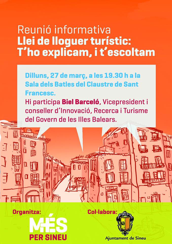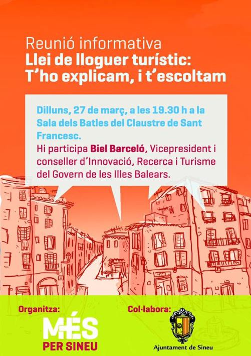 Biel Barceló serà avui a Sineu per parlar de lloguer turístic