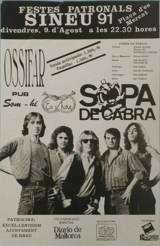 Sopa de Cabra torna a Sineu 26 anys després, el 4 d’agost del 2017, com ja va informar Díngola fa unes setmanes (fes clic aquí).