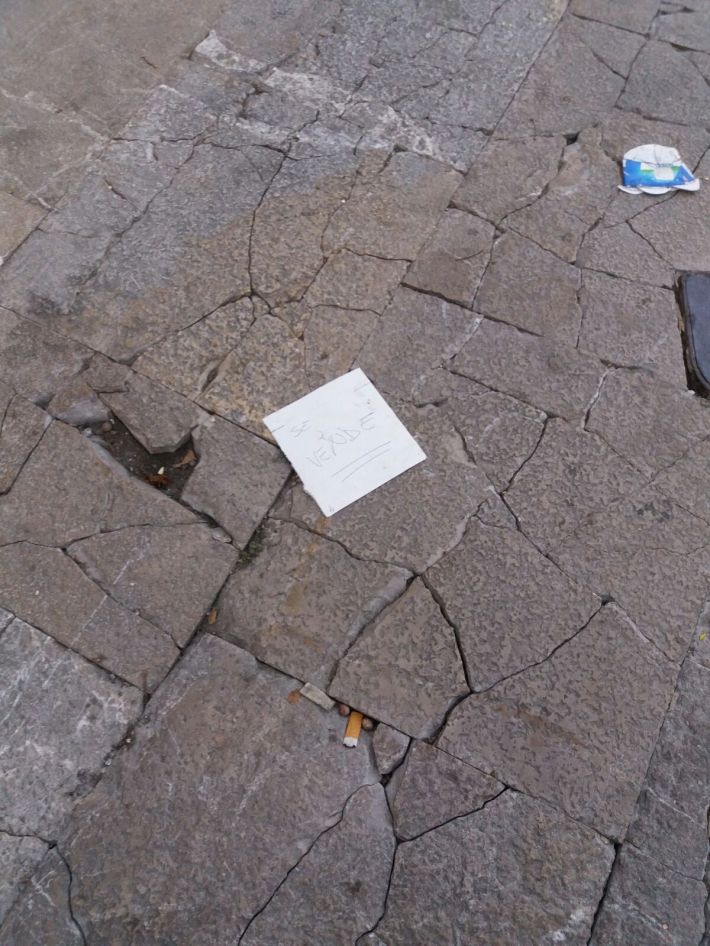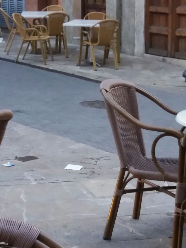 Quan a principi d’aquest segle es feren les obres d’empedrat a la plaça, segurament, no es devia pensar que, finalment, el trànsit rodat no aturaria de passar-hi com quan hi havia asfalt. És per això que en poc més de quinze anys, l’empedrat presenta un estat lamentable en molts de punts, i s’han arribat a fer clots, com el de la foto, que molts consideren un perill per als vianants.