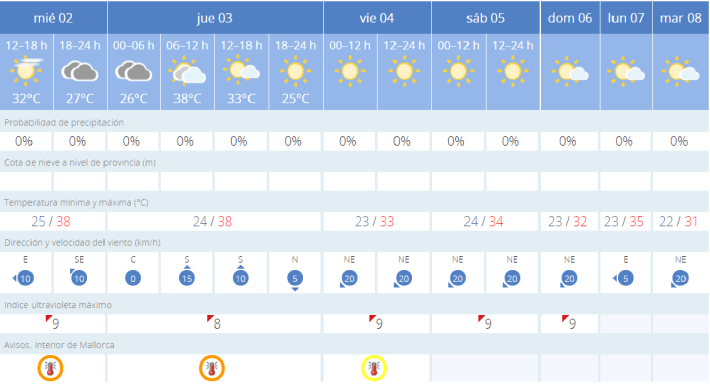 Seguim en alerta taronja i és que el Pla de Mallorca frega el 40 graus centígrads. Les temperatures molt altes no ens donen treva. Dilluns es va registrar un record històric de demanda elèctrica a Balears per mor d’aquesta onada de calor. L’AEMET ha anunciat que s’espera que a partir d’avui davallin les temperatures lleugerament fins a registrar una alerta groga. La nit de dilluns a dimarts va ser la més calorosa de l’any. Precisament, dilluns passat Sineu va ser la tercera localitat a registrar les temperatures màximes, concretament 38,2 graus. Els registres d’aquests darrers dies situen aquest estiu com un dels més calorosos de la història de Mallorca.