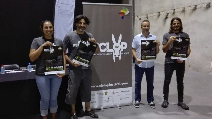 Fa uns moments Díngola era a la roda de premsa que ha ofert l’organització del Festival CICLOP, que tendrà lloc aquest cap de setmana. Han parlat Magdalena Genovart (regidora de Cultura de l’Ajuntament de Sineu), Pere Muñoz (director de l’Agència de Turisme de les Illes Balears), Tià Jordà (director del Circ Bover) i Biel Jordà (codirector de la companyia teatral Res de Res i En Blanc).