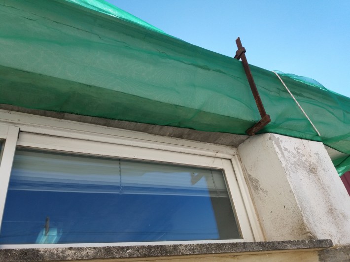 Fa prop d’1 mes que algunes peces del voladís del Centre de Salut varen caure. Ara hi ha una malla de protecció mentre no es reparin els desperfectes. També s’observen alguns cruis a la mateixa façana. La conselleria de Salut és la responsable del centre i de fer les obres oportunes.