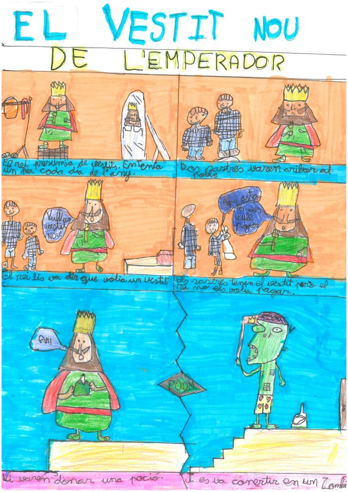 Què havien de fer els alumnes? doncs, escollir un conte de Hans Christan Andersen que havien llegit i que els hi havia agradat especialment, dibuixar-lo en forma de vinyetes amb el format d’un còmic. Els treballs es podien presentar o bé individualment o bé col·lectivament.