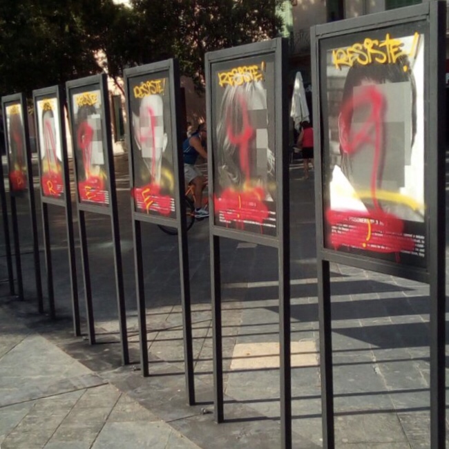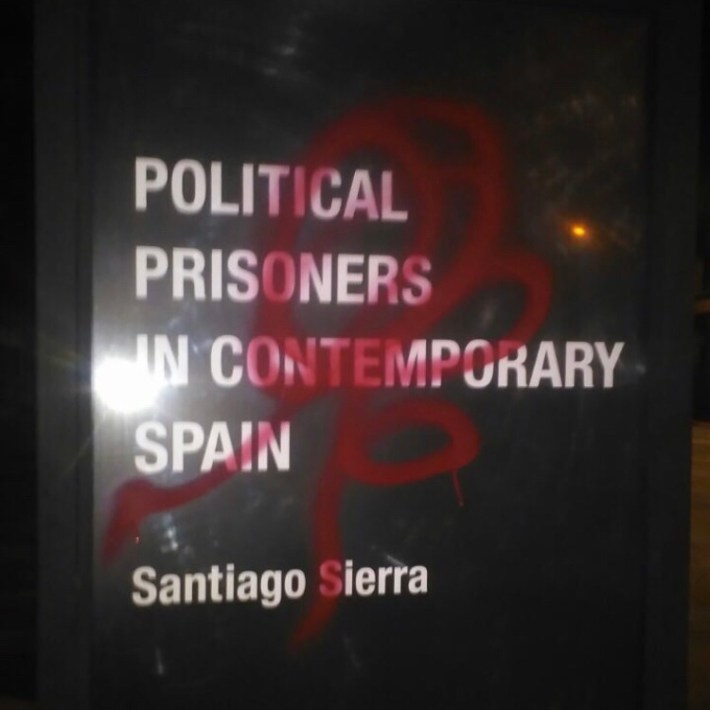 Aquest matí Palma ha despertat plena de pintades amb insults i amenaces a diversos espais representatius del mallorquinisme i de la cultura a Mallorca. L’espai de cultura Can Alcover, seu de l’Obra Cultural Balear (editora d’aquest mitjà), i la seu de l’STEI (sindicat molt lligat a la defensa de la nostra llengua), han aparegut plens de pintades, com també l’exposició ‘Presos polítics’ de Santiago Sierra (censurada a Madrid fa uns mesos), instal·lada a la plaça d’Espanya de Palma.