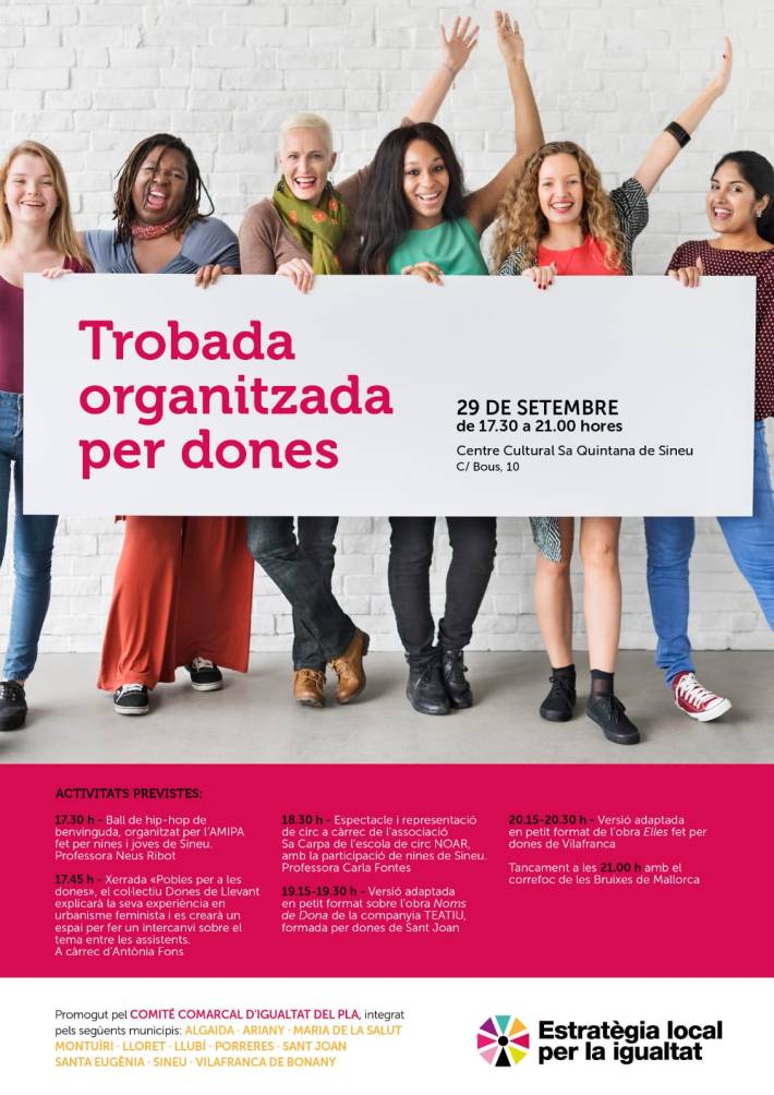 Aquest proper dissabte dia 29, entre les 17.30 h i les 21 h, se celebrarà a l’antiga escola de la Quintana la “I Trobada Organitzada per Dones” promoguda pel Comitè Comarcal de la Igualtat dels municipis del Pla de Mallorca. L’acte constarà de diversos espectacles de ball, teatre, circ, etc. i una xerrada sota el títol “Pobles per a les dones”.