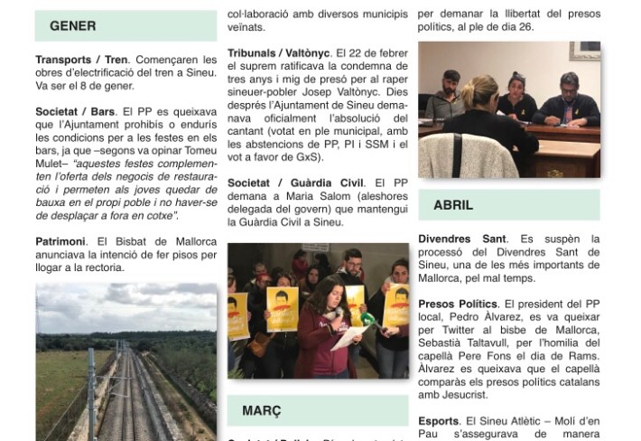 El nou número de Díngola inclourà un resum de les notícies més importants de l’any a Sineu, mes a mes. Inclourà política, economia, societat, cultura, festes i esports.