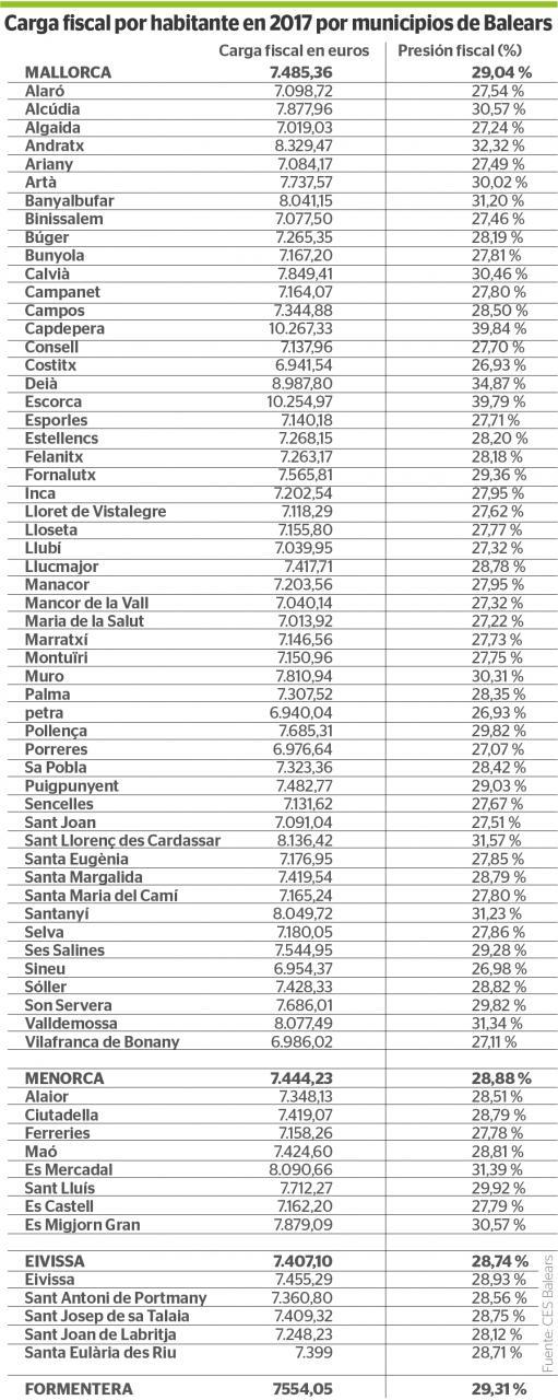 Fa una setmana el diari Última Hora va publicar els resultats d’un estudi del Cercle Econòmic i Social –en concret la seva memòria del 2017–, que indicaven que Sineu és el tercer municipi de les Illes Balears on menys imposts es paguen, només per darrera de Petra i de Costitx.