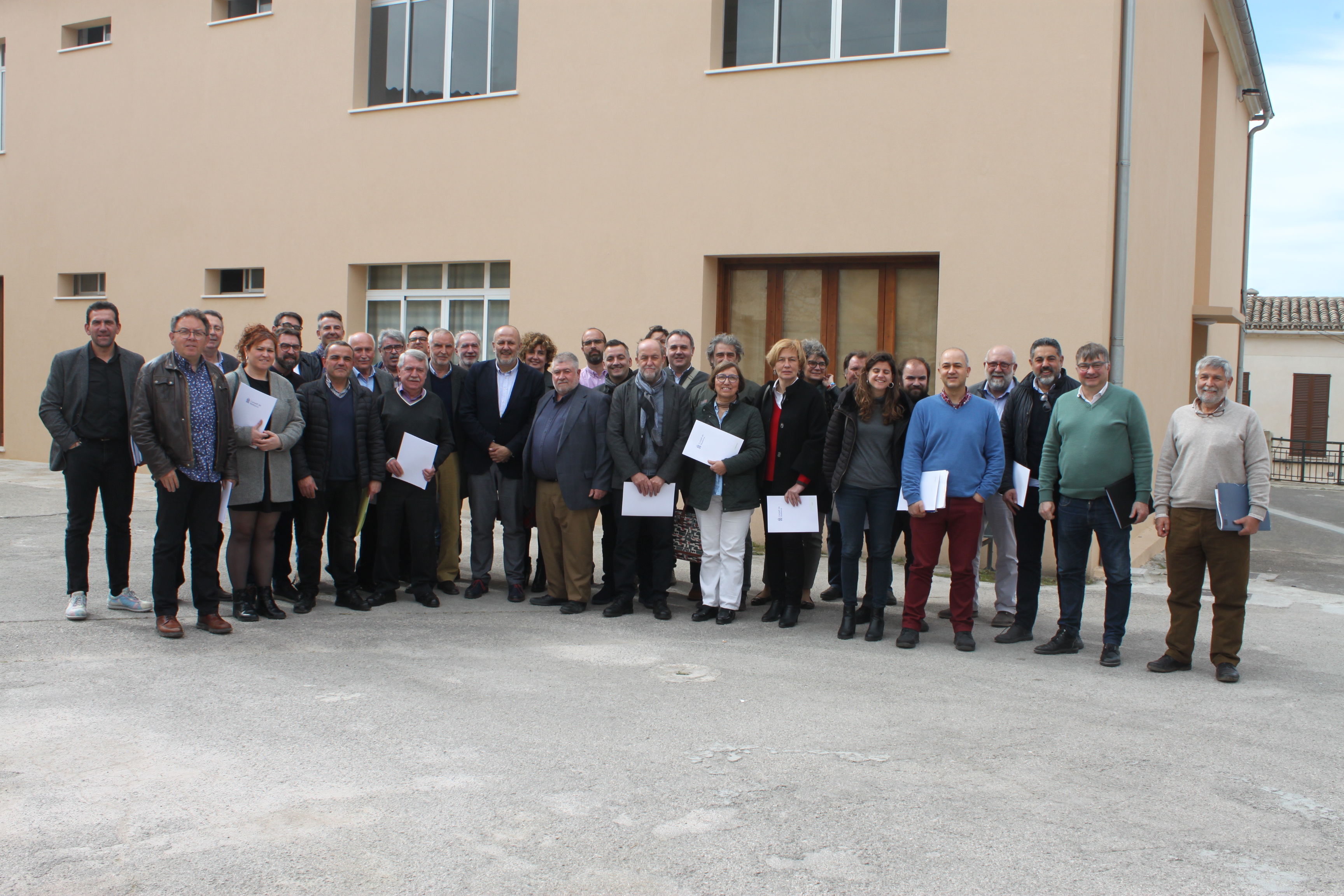 Imatge dels batles, representants dels municipis i del Consell de Mallorca, després de la signatura a la Quintana. [Foto: Consell de Mallorca]