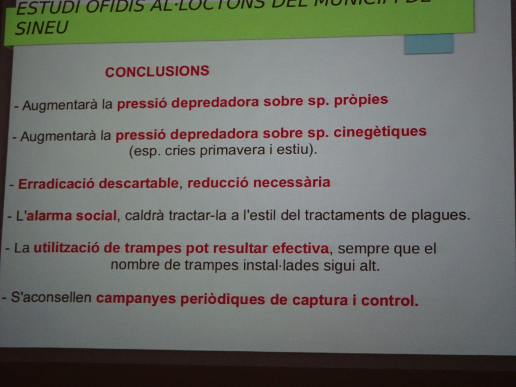 A mode de conclusió de l’estudi, es descarta l’eradicació d’aquestes serps invasores (estan ben aclimatades i quasi no tenen depredadors) i que caldrà reduir-les al màxim, que augmentarà la pressió depredadora sobre les espècies pròpies i les espècies cinegètiques, que caldrà tractar l’alarma social com un tractament de plagues, que la utilització de trampes pot ser efectiva si se’n instal·len moltes i que s’aconsella campanyes periòdiques de captura i control.