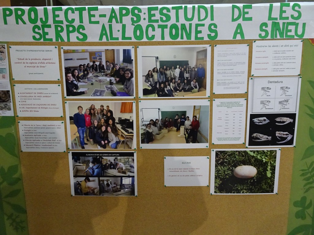 L’estudi es complementa amb una exposició que serà visitada per tots els centres d’infantil i primària de la comarca i que tenen l’IES Sineu com centre de referència. Podrem veure aquesta exposició, que ara està al Hall de l’Institut, a la Fira de maig. També s’ha elaborat un tríptic informatiu sobre el que s’ha de saber de les serps introduïdes. L’Ajuntament de Sineu ha encomanat còpies del tríptic per posar a disposició de la gent interessada.