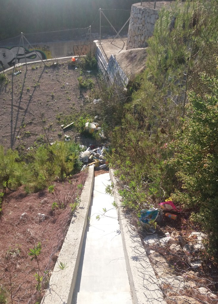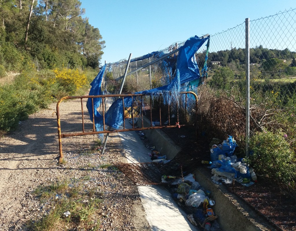 Les reixes de tancament han estat foradades de d’alt a baix, a cada un dels caps del camí, i el lloc s’ha convertit, també, en un abocador incontrolat. Hi ha una part del camí que no té cap protecció del talús de la via.