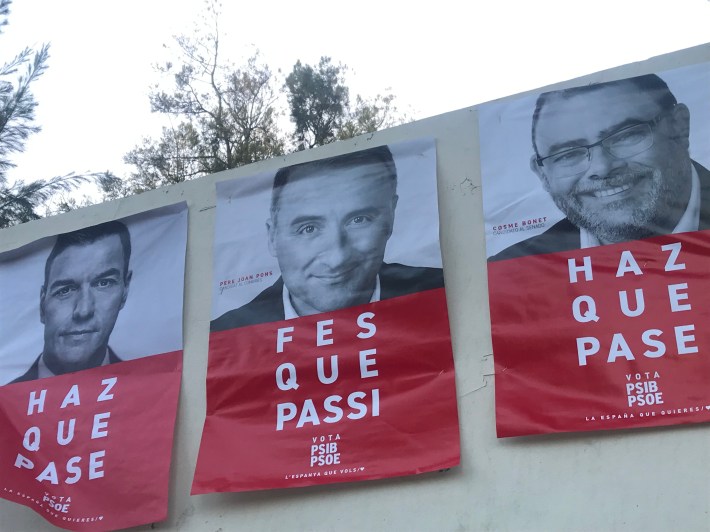 Les eleccions generals del 2019, a Sineu, per ara no han tengut massa interès. O això diria qualsevol que es passegés pels carrers del poble. Nul.la publicitat de cap partit, excepte alguns cartells de paper –mal penjats i ja lleugerament esbocinats– a la plaça des Fossar. I només de tres partits: Veus Progressistes –la coalició del Més per Mallorca de Guillem Balboa i l’Esquerra Republicana de Mateu Xurí–, el PSOE de Pere Joan Pons, i el PP de na Marga Prohens. Cap més. Cal dir que el PSIB-PSOE va posar la publicitat just fa uns dies, i que al principi només el PP i Veus Progressistes havien penjat algun paper.