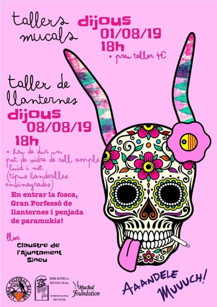Chamaquitos i chamaquitas! Els Tallers Mucals ja arriben, güey! Avisau els vostres padresitos i madresitas o qualque cuate que us hi acompanyi, i veniu dia primer d’agost i dia 8 a fer els pinches paramuquis. Ándele, Much, aquí hi ha domàtiga!