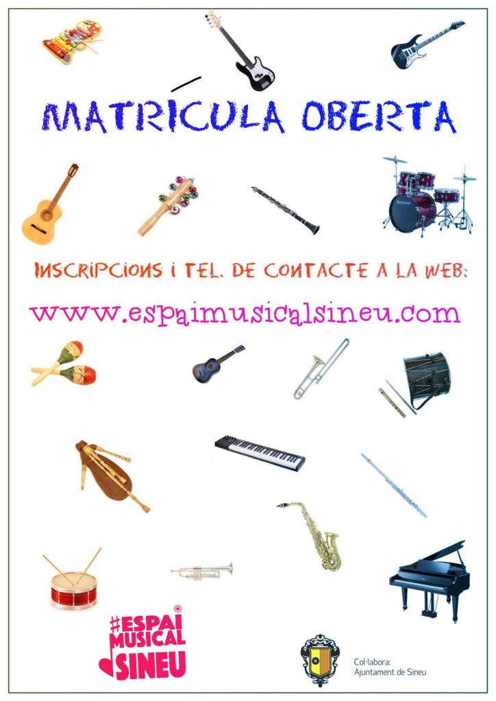 L’Espai Musical de Sineu obre el termini d’inscripció per al curs 2019-20. Fins l’1 d’octubre està obert el termini. Es poden consultar els horaris i els cursos al web www.espaimusicalsineu.com . També hi trobareu el formulari d’inscripció.