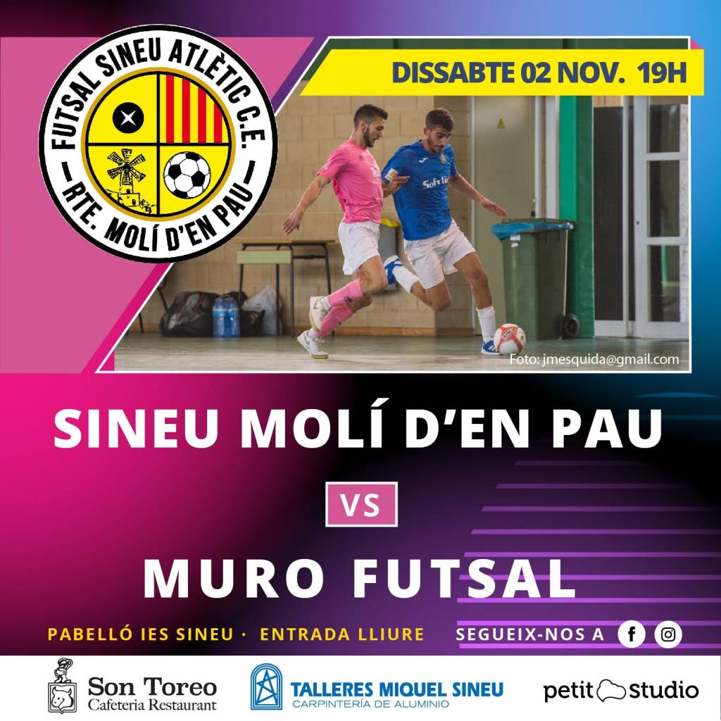 Dissabte es disputa la sisena jornada de la lliga de la Tercera Divisió balear de futbol sala i el Sineu Atlètic-Molí den Pau rep la visita del líder Muro Futsal, que no ha perdut cap dels partits anteriors.