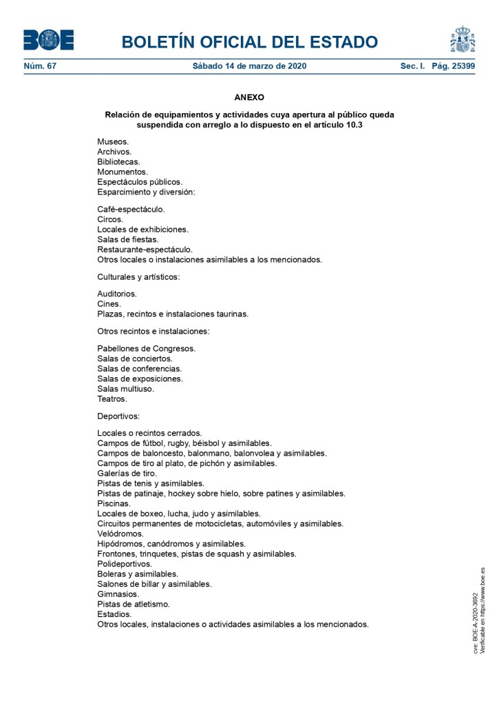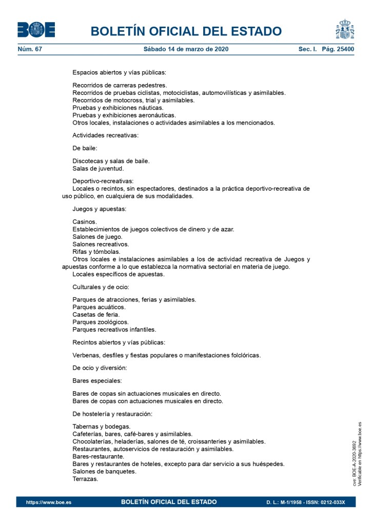A l’annex del Reial Decret trobareu tots els establiments i activitats l’obertura dels quals queda prohibida al públic: