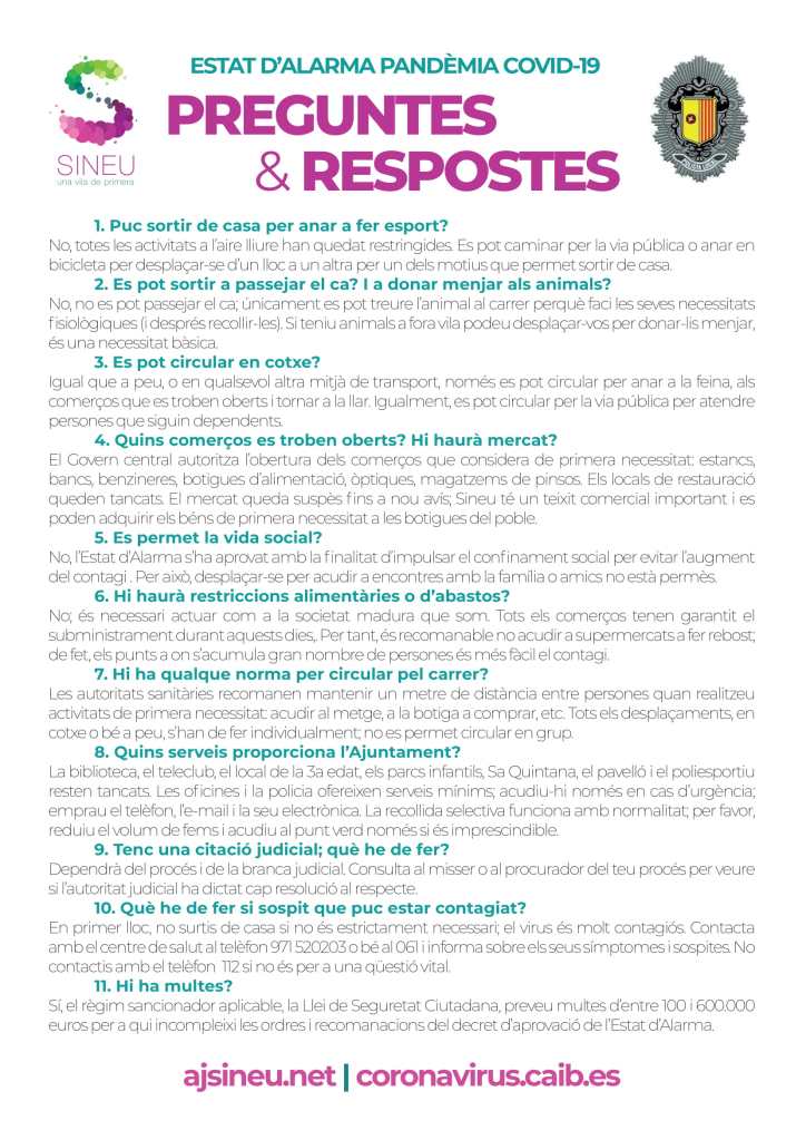 L’Ajuntament i la Policia Local han publicat unes orientacions, amb el format de preguntes i respostes, per informar a la gent del poble del que pot fer i el que no durant l’estat d’alarma, que està declarat des de diumenge i amb una durada de 15 dies naturals.