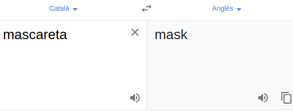 Un altre argument, provau de traduir amb un traductor on-line la paraula “mascareta” (terme que ja s’ha escampat per Internet amb més virulència que el SARS-CoV-2) a diferents idiomes: