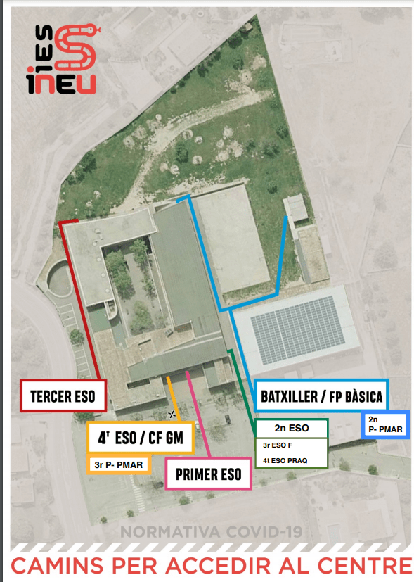 Ambdós centres educatius han habilitat diferents espais d’entrada i sortida als centres i itineraris per garantir al màxim la seguretat sanitària.