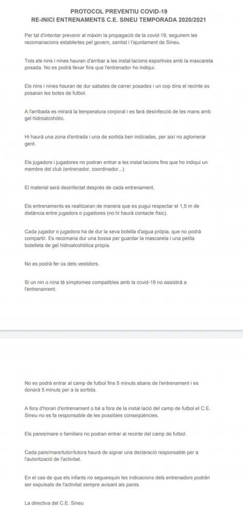 Aquí podeu veure els horaris dels entrenaments i el protocol que ha fet el club degut al COVID-19.