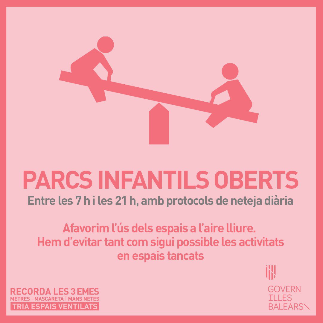 Per afavorir l’ús dels espais a l’aire lliure, els ajuntaments de Mallorca podran reobrir a partir del proper dissabte els parcs infantils.