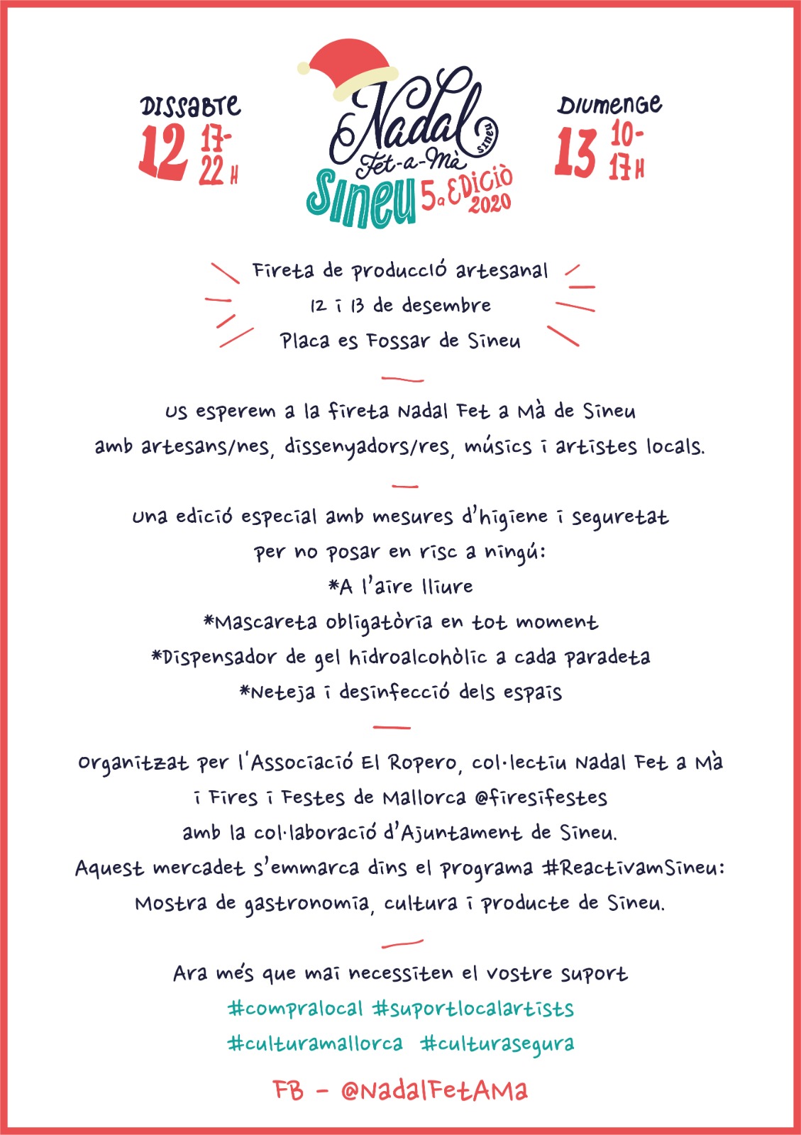 Enguany sí que hi haurà mercadet artesà a Sa Plaça des Fossar. Serà aquest dissabte i diumenge. Serà la Fireta de Nadal de Sineu, amb artesans, dissenyadors, artistes locals i molt més.