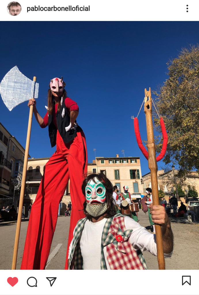 Ahir diumenge encara poguérem veure qualque extern que s’animà a pegar un bot a Sineu cridat pel Mercat de Nadal, inclús qualque turista (és segur que ben pocs) que hi trobà animació i una mica de parèntesi ociocultural abans del que, molt probablement, serà la tercera onada mallorquina de la pandèmia. Un d’aquests turistes, que per ventura passà desapercebut, fou l’artista (cantant, humorista i actor) Pablo Carbonell, molt conegut com a cantant de Toreros Muertos. I per si ningú el va afinar per Sineu, ell mateix en deixà constància en el seu compte d’Instagram, on parlava dels records de jovenesa que li vengueren al cap en veure una comediant amb xanques “en el Mercadillo de Sineu“.