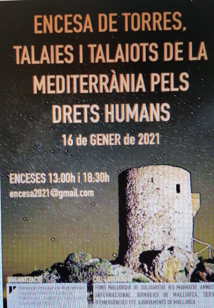 derarà, un any més, l’Encesa de Torres i Talaies de la Mediterrània pels Drets Humans, que es durà a terme dissabte 16 de gener de 2020, gràcies a la col·laboració del Consell de Mallorca, Amnistia Internacional, l’Institut de Marratxí i el Fons Mallorquí de solidaritat i Cooperació.