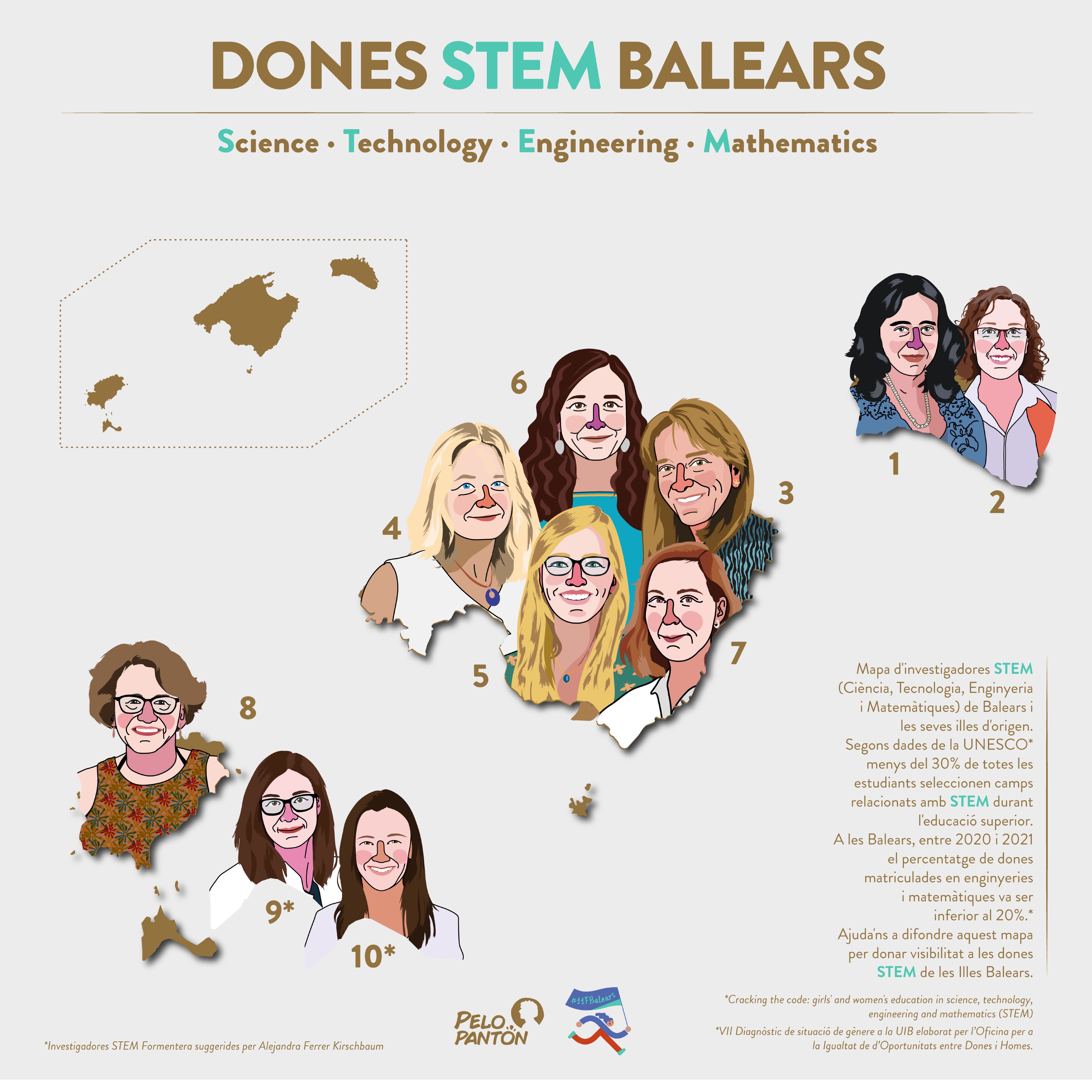 Luís Resines, il·lustrador resident a Sineu que signa amb el pseudònim de Pelopantón, ha publicat un mapa amb la intenció de visibilitzar les dones que es dediquen a la ciència, la tecnologia, l’enginyeria i les matemàtiques. Avui, 11 de febrer, se celebra el Dia Internacional de la Dona i la Nina a la Ciència i ja fa dies que l’artista publica per la xarxa imatges d’aquest mapa on podem veure la imatge i el nom de les científiques de l’Estat espanyol i de les Illes Balears.