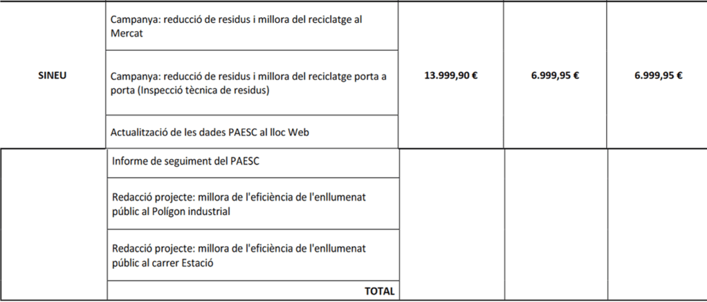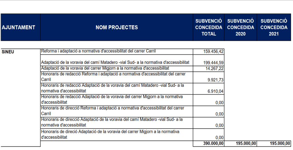 Aquí teniu el detall dels projectes subvencionats a l’Ajuntament de Sineu: