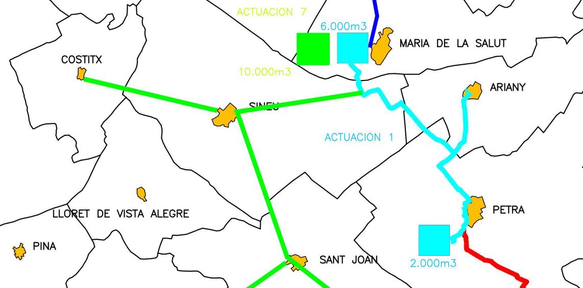 Òbviament, aquesta canalització soluciona els problemes de Petra i Ariany, i en un futur els de Manacor, però no els de Sineu i Lloret. En el mapa adjunt podeu veure la planificació de la xarxa hídrica de Mallorca, i en aquesta, de fet, hi ha proposat un ramal entre Maria i Sineu, que després es perllongaria cap a Costitx per una banda, i cap a Sant Joan per l’altra.