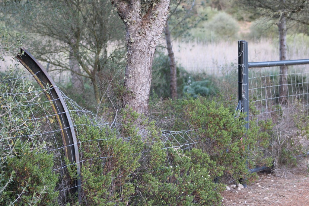 Fins ara hi havia algun lloc on la tanca que envolta el recinte de les antigues mines estava espatllada, i els curiosos podien accedir-hi. Però es veu que no era suficient. N’hi ha que hi volen entrar ben “de pinta en ample”, i ni tan sols es preocupen de cercar una entrada. Aquestes passades festes de Setmana Santa, no record si era el dia de Pasqua o la segona festa –dies 4 o 5– vaig ser testimoni d’un acte més de destrossa material i degradació de la zona per part d’un grapat de «domingueros» –i amb això no vull dir que no fossin ben ‘locals’–. Quan m’acostava a la zona vaig veure dos cotxes que estaven aparcats a la vora del camí, i dues famílies –adults i un grapat d’infants– que havien penetrat a la finca a través d’una nova obertura a la reixa. El dia després hi vaig tornar, i me vaig trobar més brutícia que dies abans, i fins i tot aquesta cadira rovellada que veis a una de les fotos… Lo de la cadira, disposada mirant al llac, me va deixar perplexe. Només hi faltava un para-sol i qualque botellí buit de cervessa al costat de la cadira.
