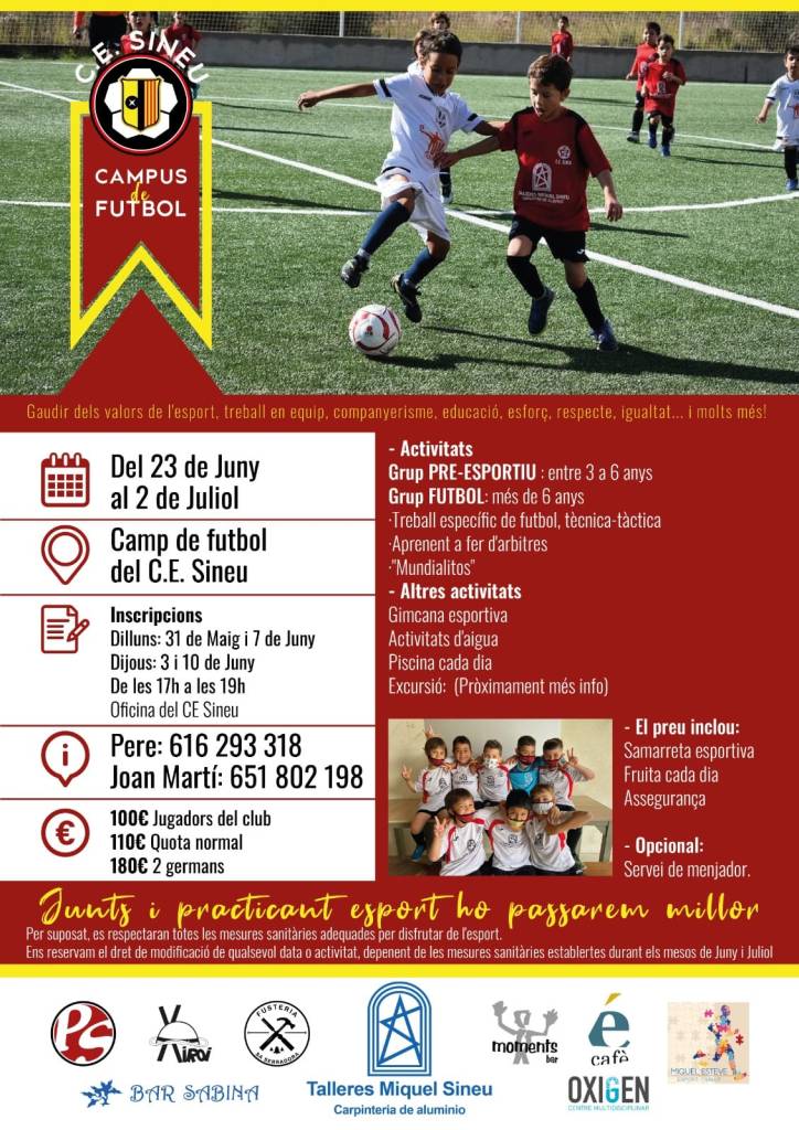 La majoria d’entitats locals esportives ja organitzen els campus o escoles d’estiu, una vegada acabat el curs escolar. És el cas del CE Sineu, el Bàsquet Sineu, el Club de Tennis i la Gimnàstica Rítmica. Aquí teniu els cartells informatius dels diferents campus o escola d’estiu:
