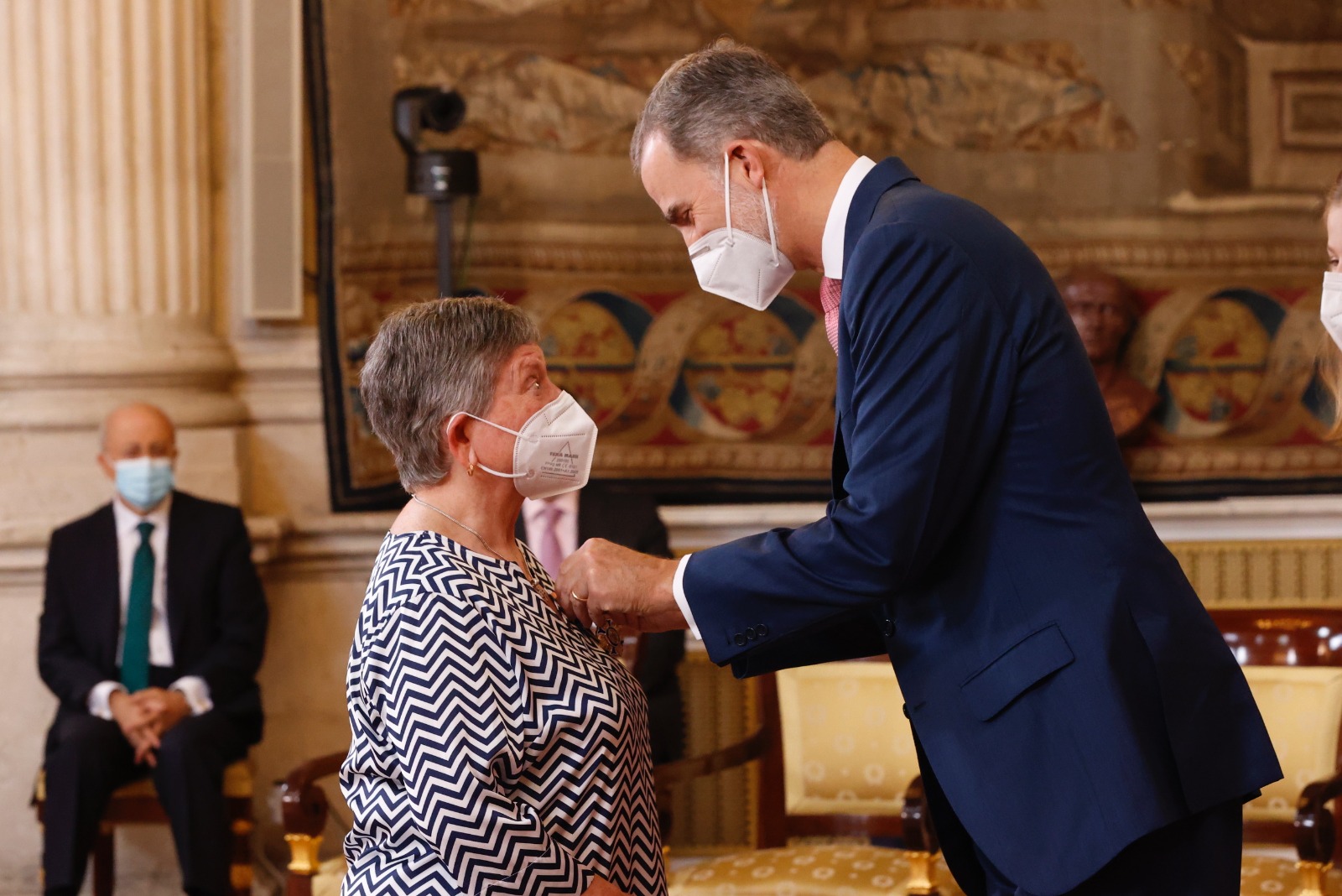 Margalida Jordà Bernada, monja de la Caritat sineuera, ha rebut avui de mans del cap d’estat, Felip de Borbó, la condecoració de l’Orde del Mèrit Civil, com a directora general del projecte educatiu Naüm, a la barriada de Son Roca (Palma).