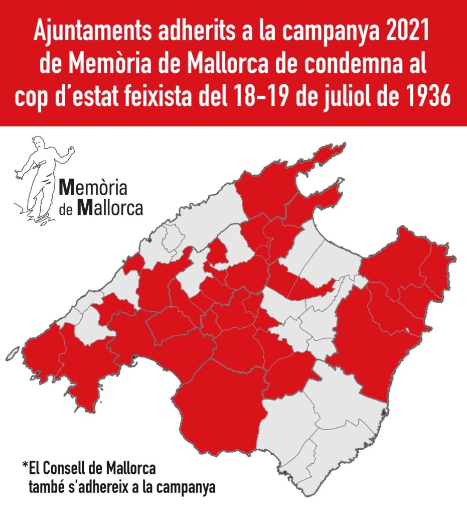 L’associació de Memòria Històrica va enviar una petició als ajuntaments de Mallorca per sumar-se al gest de rebuig contra l’alçament militar que va dur a una Guerra Civil i una posterior dictadura feixista que va durar 40 anys.