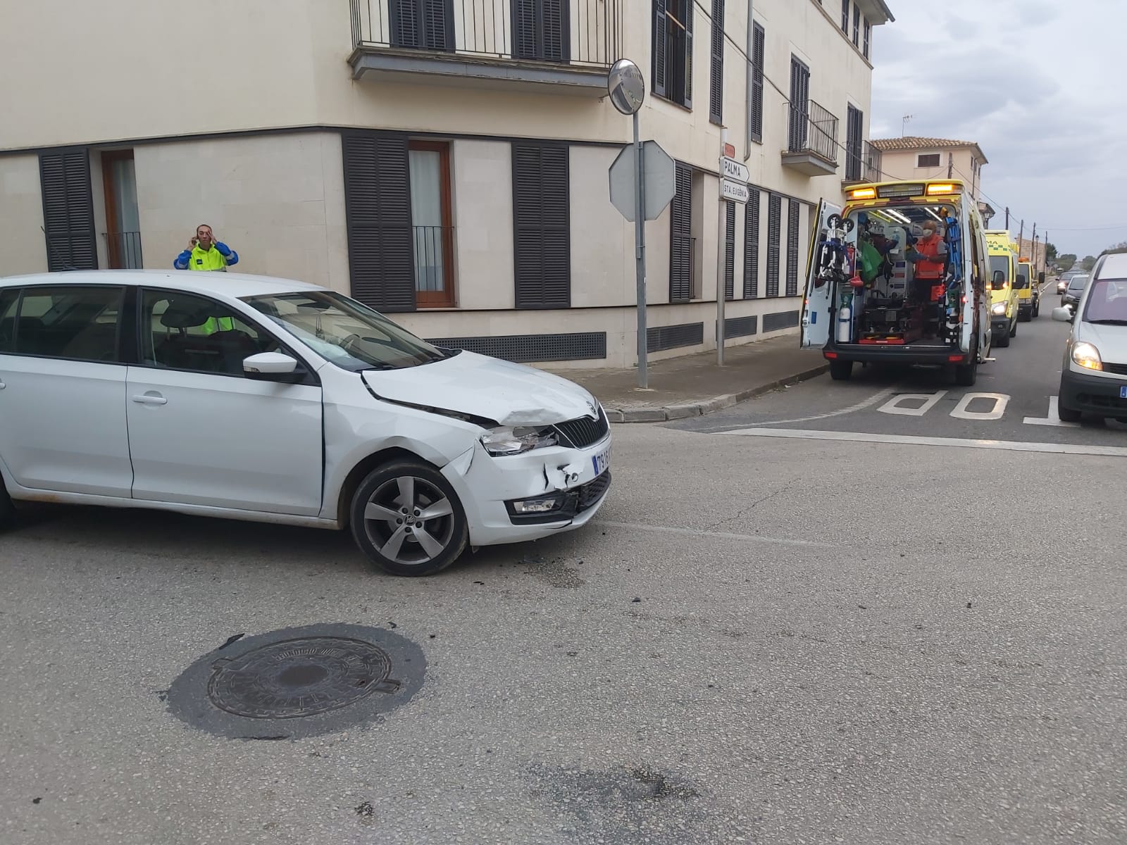 Fa uns minuts hi ha hagut un xoc entre dos cotxes al vial, a l’stop de la carretera de Palma. Un dels cotxes no ha fet l’estop del carrer de Palma i ha embestit a l’altre. Degut a l’impacte s’ha activat l’airbag del cotxe embestit i el conductor a resultat ferit lleu, amb dolor al pit i un tall a una mà. Dues ambulàncies, un camió grua i una furgoneta de la Guàrdia Civil de Tràfic han fet acte de presència.