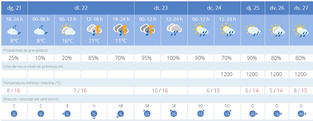 Aquesta (fes clic) és la previsió de l’AEMET per aquesta setmana a Sineu.