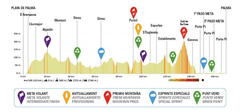 Però serà a la darrera etapa del diumenge, Platja de Palma-Palma, on entraran en els carrers del poble en dues passades: el primer pas serà prop de les 11,00 h i vendran de Sant Joan per a dirigir-se cap a Manacor, passant pels carrers Migjorn, Estació i Sta Margalida. El segon pas serà vers les 11,30 h i entraran pel carrer Sta Margalida per agafar el vial nord (c/ de Llevant i c/ de Tramuntana on hi haurà un SPRINT ESPECIAL) i seguir pels carrers Frontó i Xaloc per a girar cap a Palma.